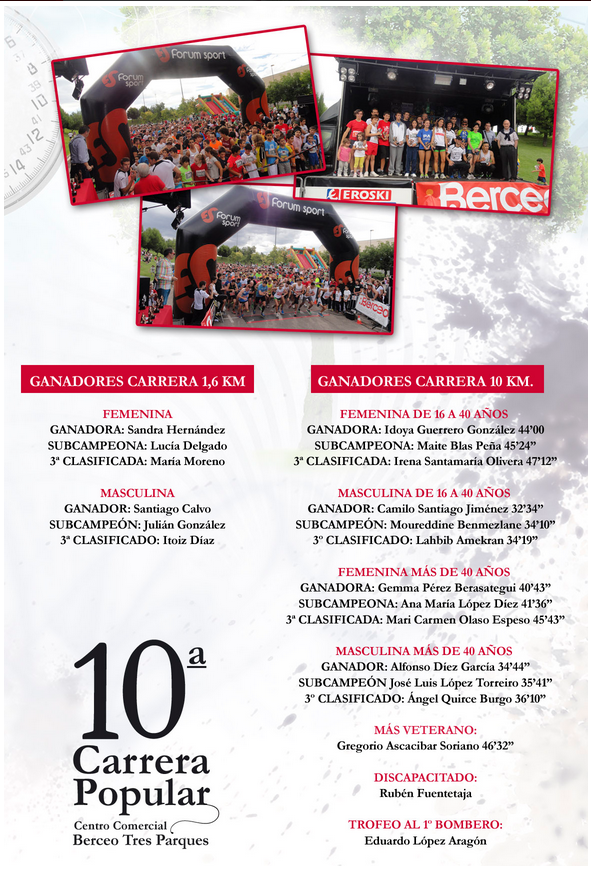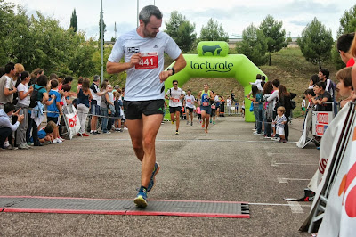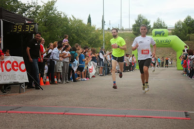 La segunda prueba a las 12 de la mañana, llana por el parque del Iregua,bastante gente animando,dos vueltas, buena actuación del equipo y reseñar dos compañeros de curro entre los 20 primeros, Dani Y Edu (1º bombero).